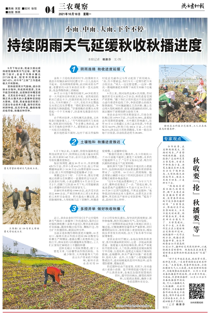 持续阴雨天气延缓秋收秋播进度
