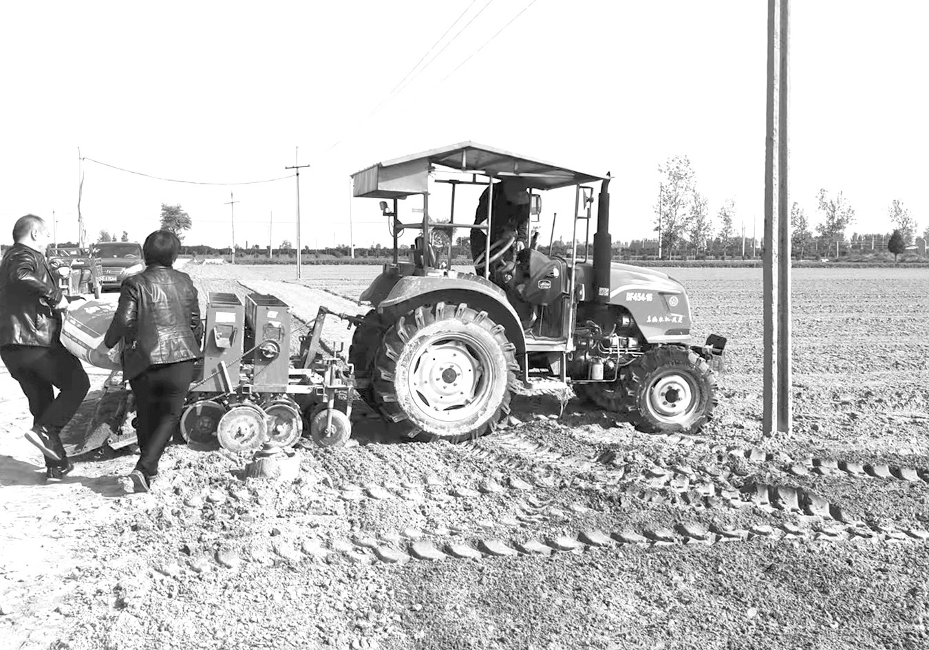 10月16日,大荔县韦林镇东高村正在组织50余台播种机播种小麦。目前,该村已播种小麦2000亩。