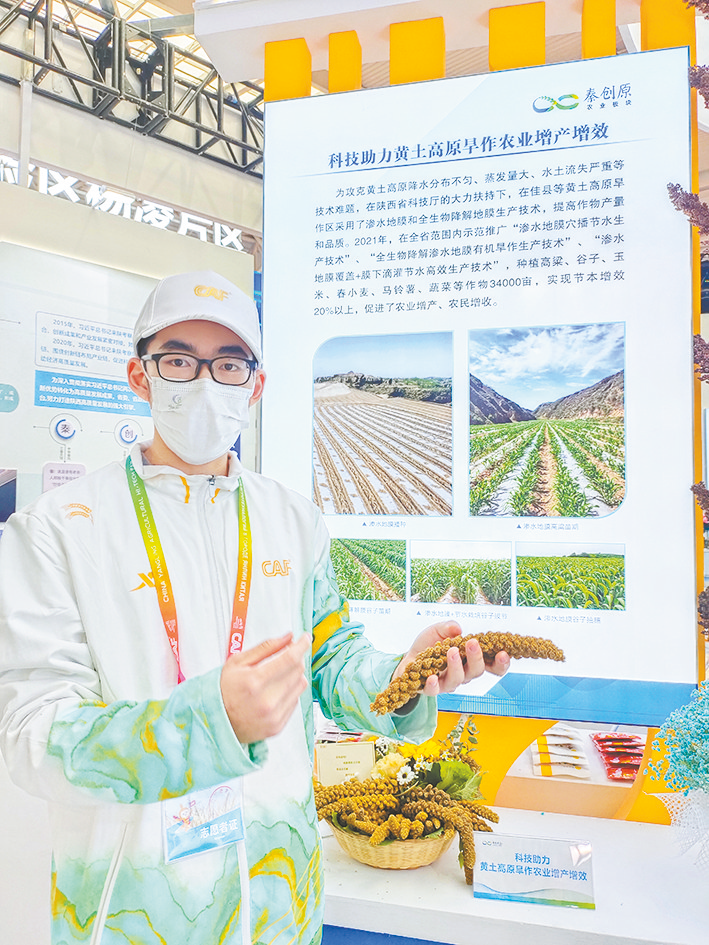 志愿者介绍科技助力黄土高原旱作农业增产增效情况。