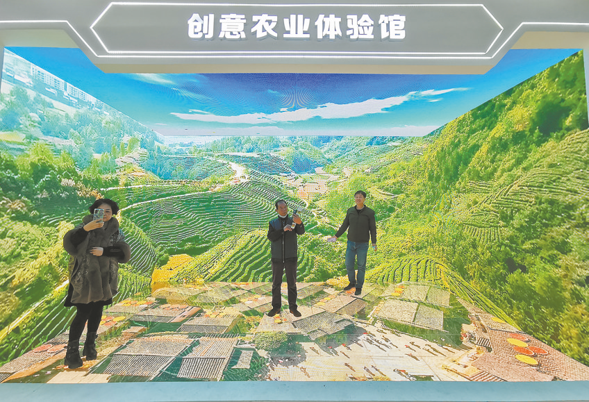 ⑧ 10月22日,在农高会美农创意农业展区,观展群众正在创意农业体验馆进行体验。据现场工作人员介绍,这个创意农业体验馆播放的都是有关全国各地美丽乡村的视频,观众可进行沉浸式体验。