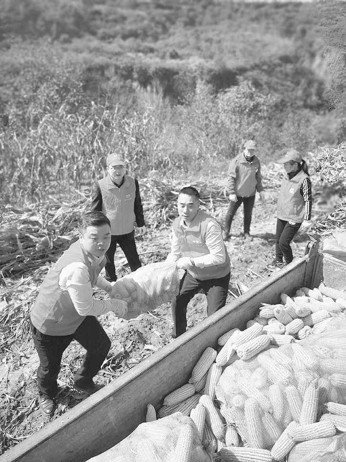 陕西信合耀州联社党员干部帮助当地群众抢收玉米。 本报记者 赖雅芬 通讯员 郝菲 文/图
