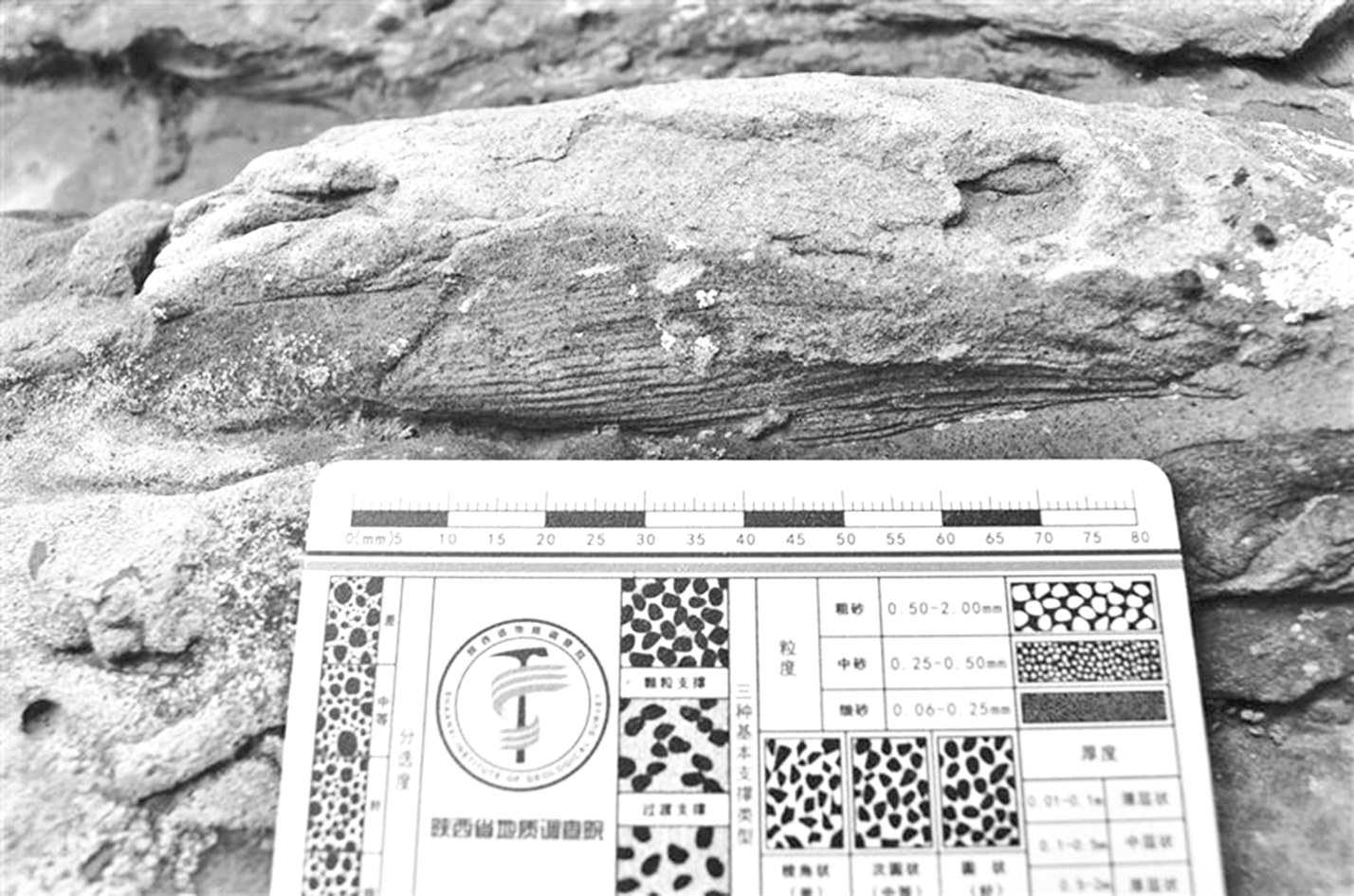 在延安市甘泉县发现的恐龙足部皮肤纹理印痕。