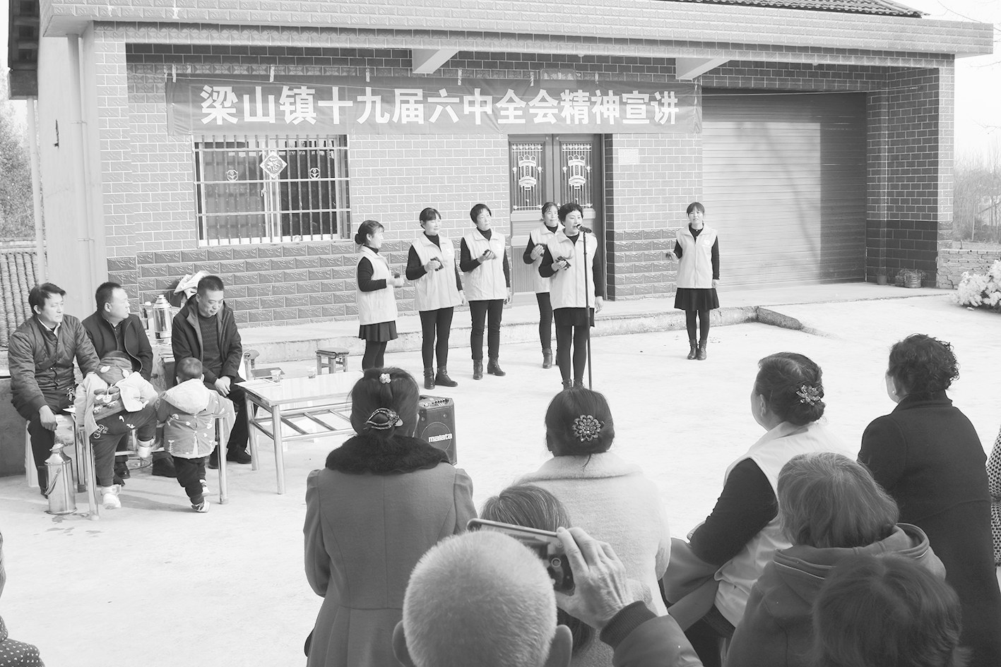 “冬月菊花分外香,神州大地凯歌扬,首都北京传喜讯,六中全会放光芒……”12月3日,汉中市南郑区梁山镇前丰村村民龚清辉家的院子里,志愿者正在用自编的快板书宣讲党的十九届六中全会精神。