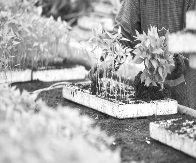 分苗 分苗密度一般为10厘米×10厘米,可双株分苗,也可单株分苗。用分苗板切好分苗沟后排苗,一般每行12株,排苗深度以子叶露出床面为宜。苗排好后淋水,注意水淋在沟底,即淋暗水,排后厢面保持整洁、干燥。