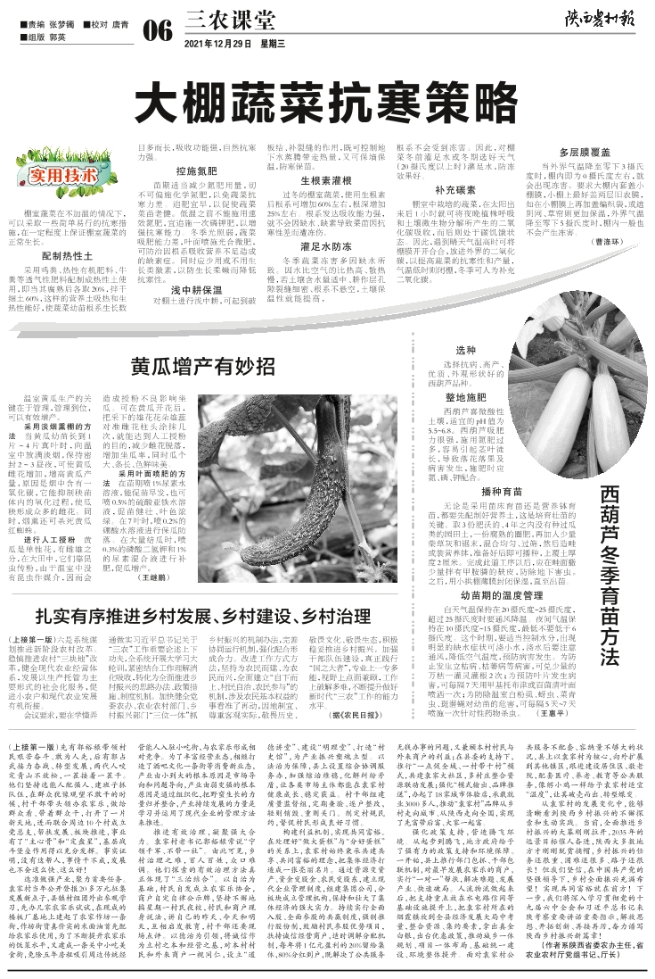 大棚蔬菜抗寒策略