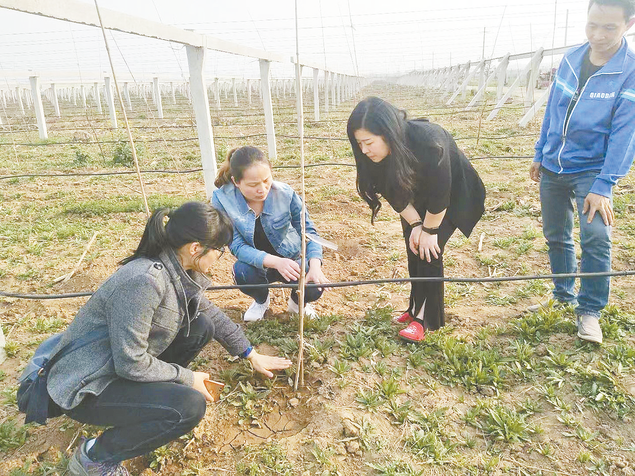 赵小娟(右二)邀请果树专家为合作社社员培训。 本报记者 韩小珍 文/图