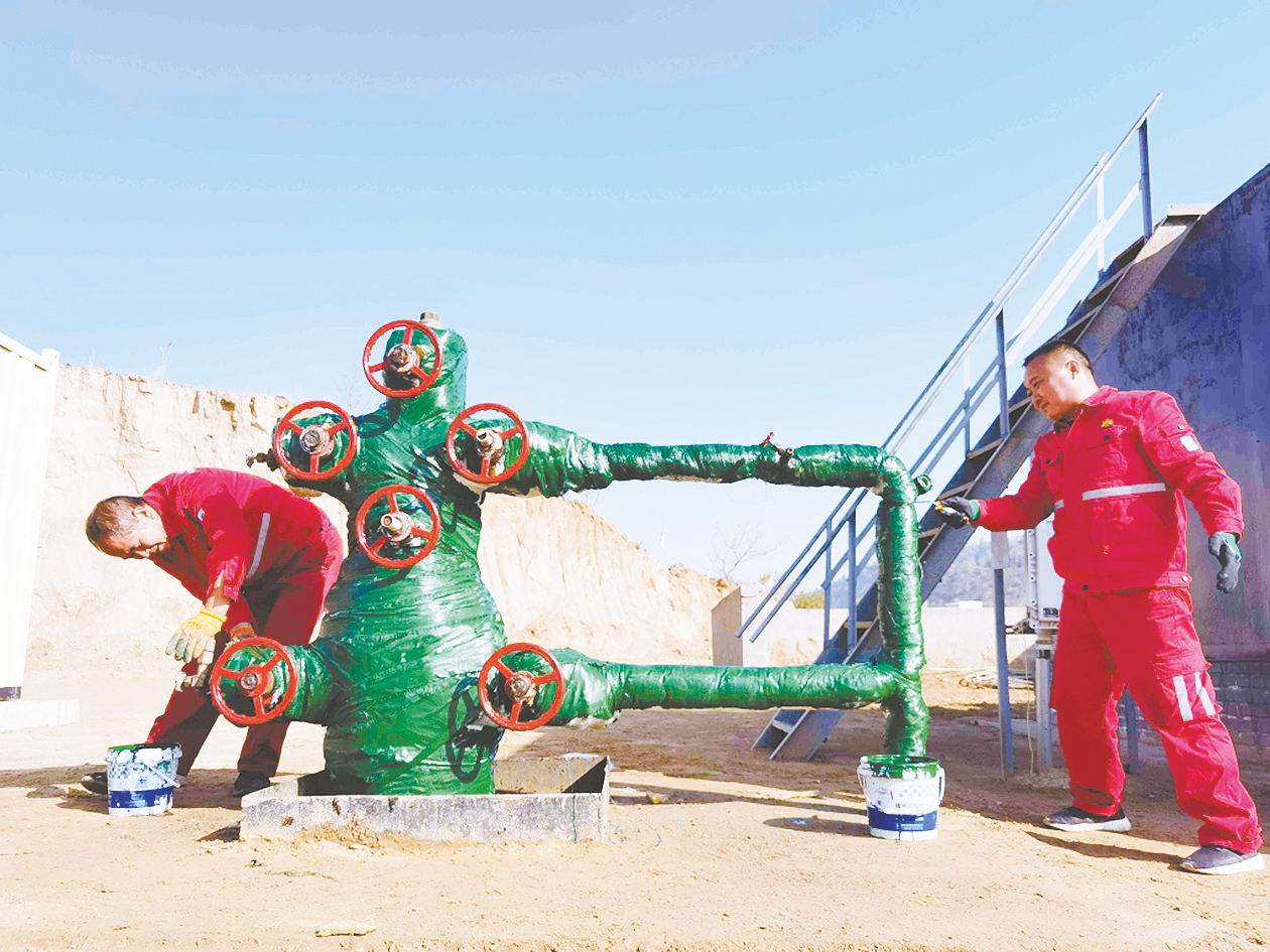 随着气温逐渐降低,油田公司杏子川采油厂职工为注水井“加衣保暖。