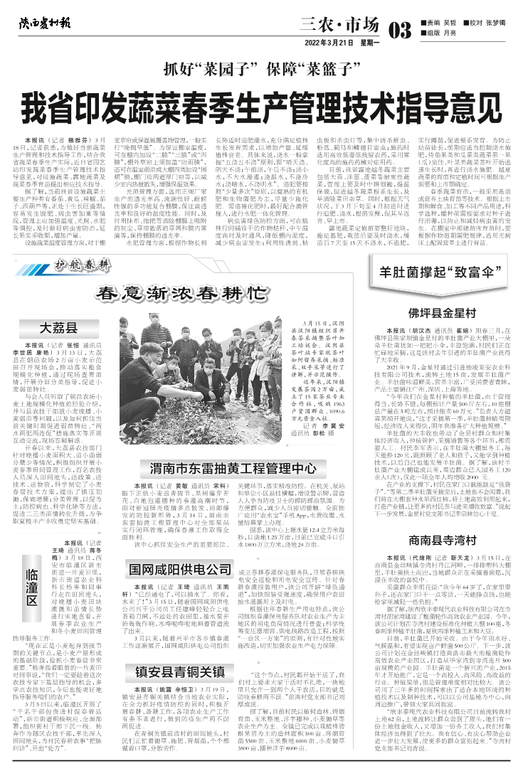 我省印发蔬菜春季生产管理技术指导意见