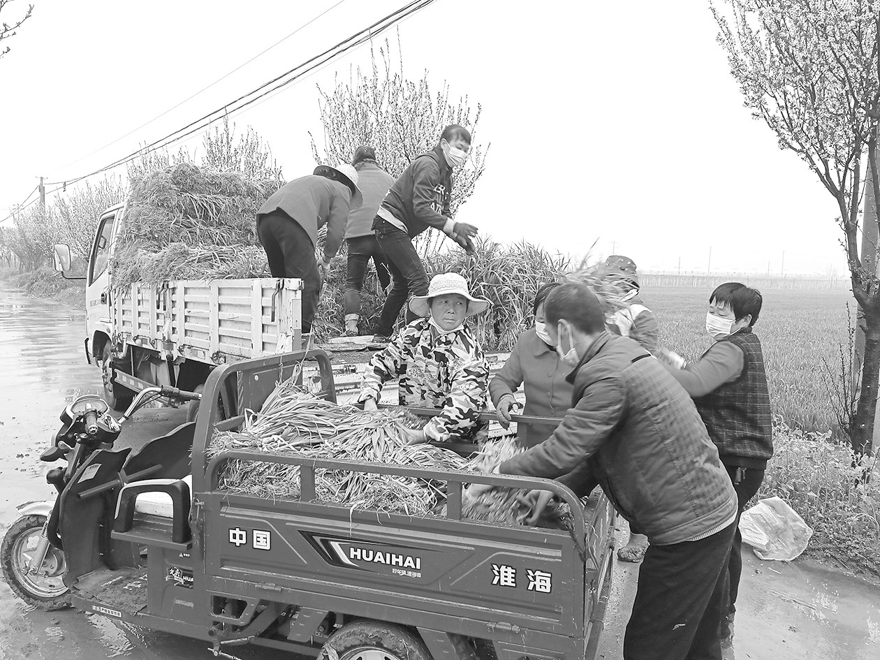 3月17日上午,在扶风县九丰种植农民专业合作社,工人们正忙着采收蔬菜、打包装箱、搬运装车。