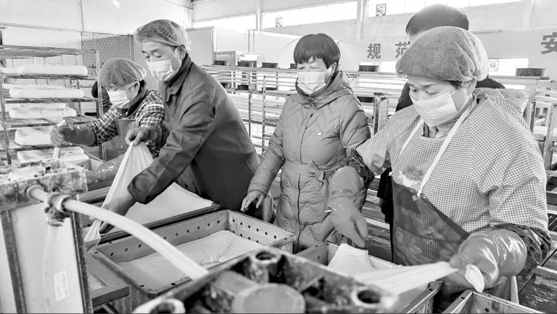 近年来,畅家村持续拓展“党支部+企业+农户”的产业发展模式,积极引入社会资本投资建成大荔县泽瑞豆业有限公司,日产豆腐5000公斤,年产值达600万元,在吸纳村民入企打工的同时,还将为壮大村集体经济、改善提升村基础设施打下坚实基础。 记者 邵林喜 通讯员 党宇杰 摄