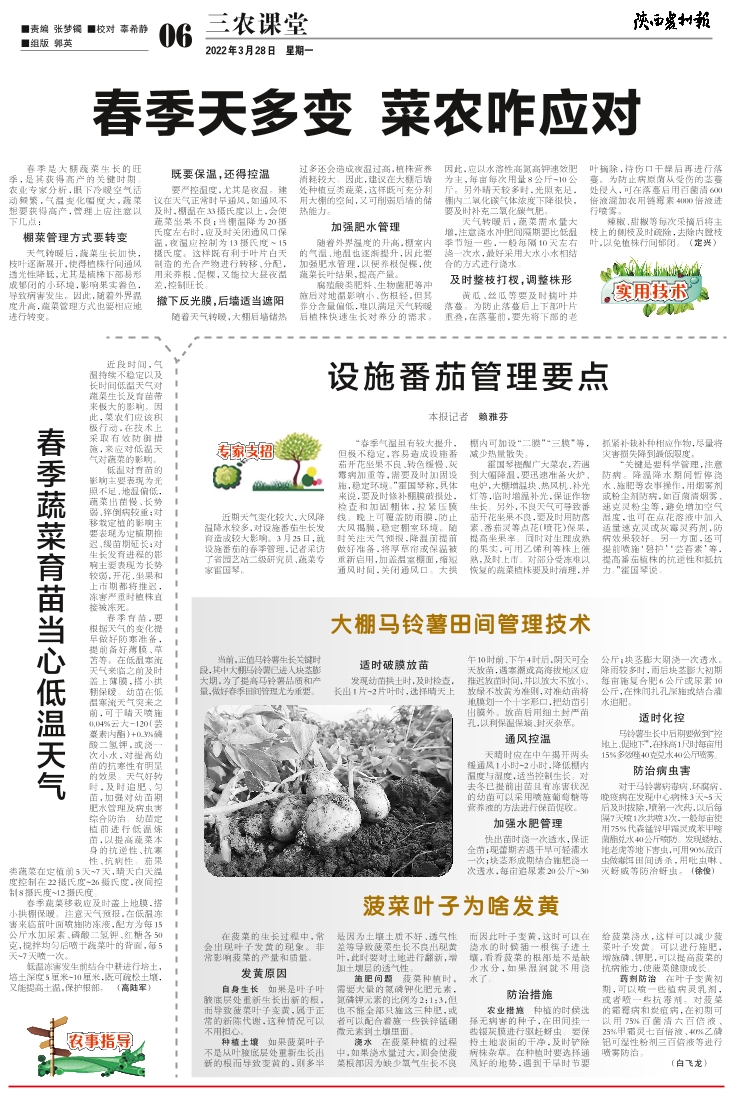 春季天多变 菜农咋应对