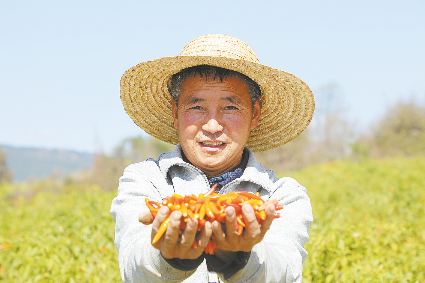 洛南县灵口镇宽坪村村民马宏展示种植的辣椒。