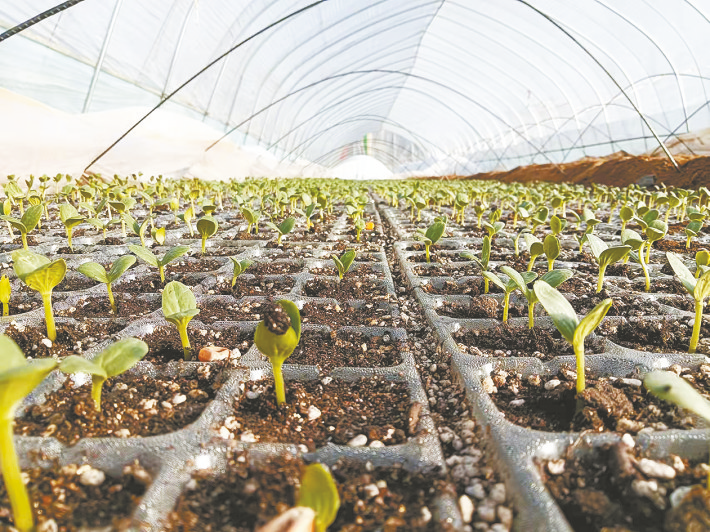 中联村大棚内的育苗。