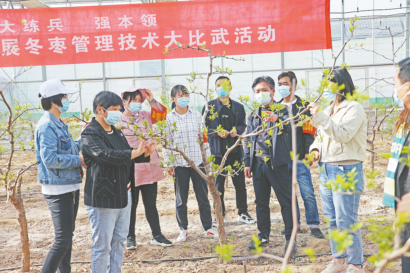 4月7日,为提高冬枣技术人员的管理技能,大荔县林业局举办的冬枣管理技术大比武活动在冬枣博览园举行。