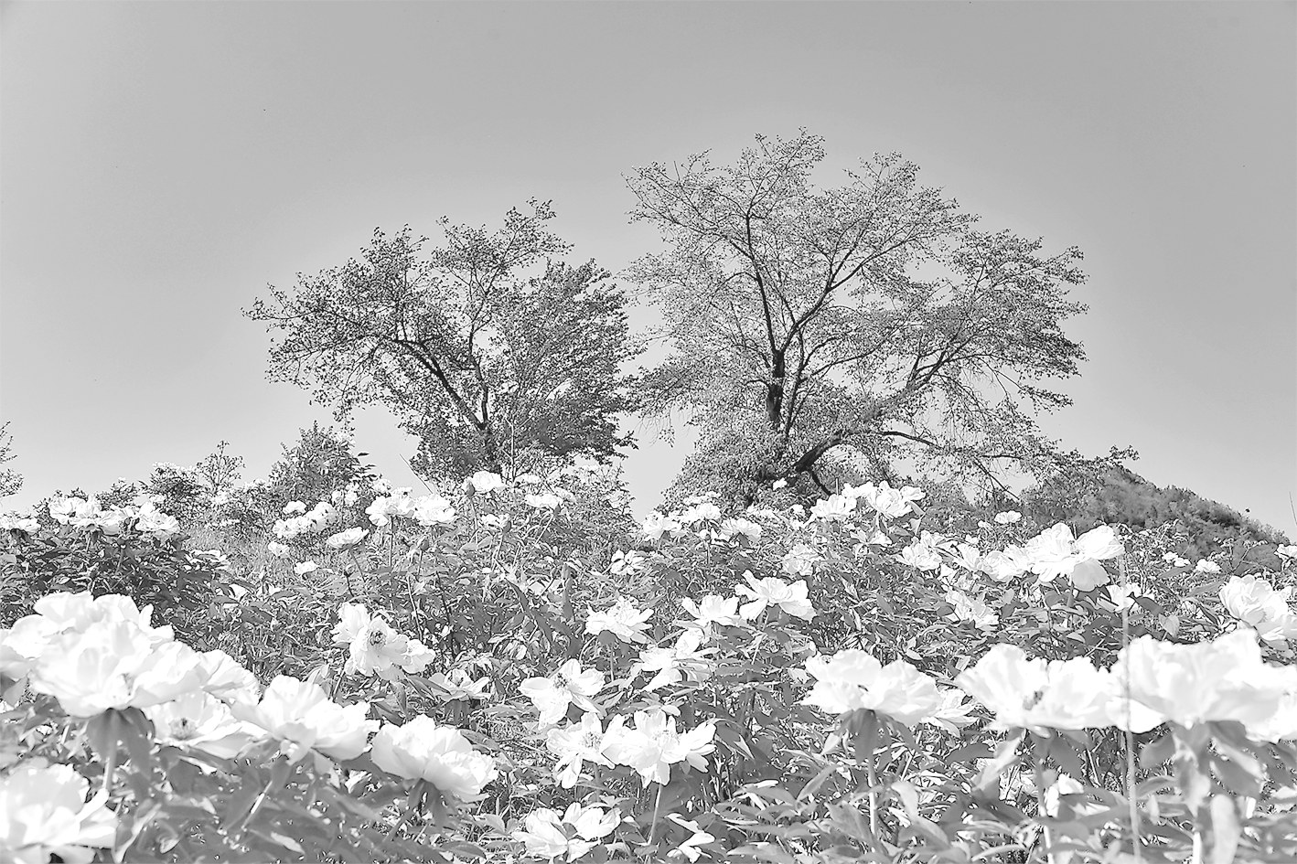 细看那园中仙子娇艳欲滴,有出水芙蓉般清新柔美。万千枝头的花朵,粉红如少女面容娇俏可爱,白色如阳春白雪洁净如玉……斜阳照映着牡丹花,温润可人,即使马良神笔也勾画不出如此神韵。同时,只见农人勤耕,劳作播种,忙碌地头。乡村田园百花齐放,展现出一片生机勃发的景象。