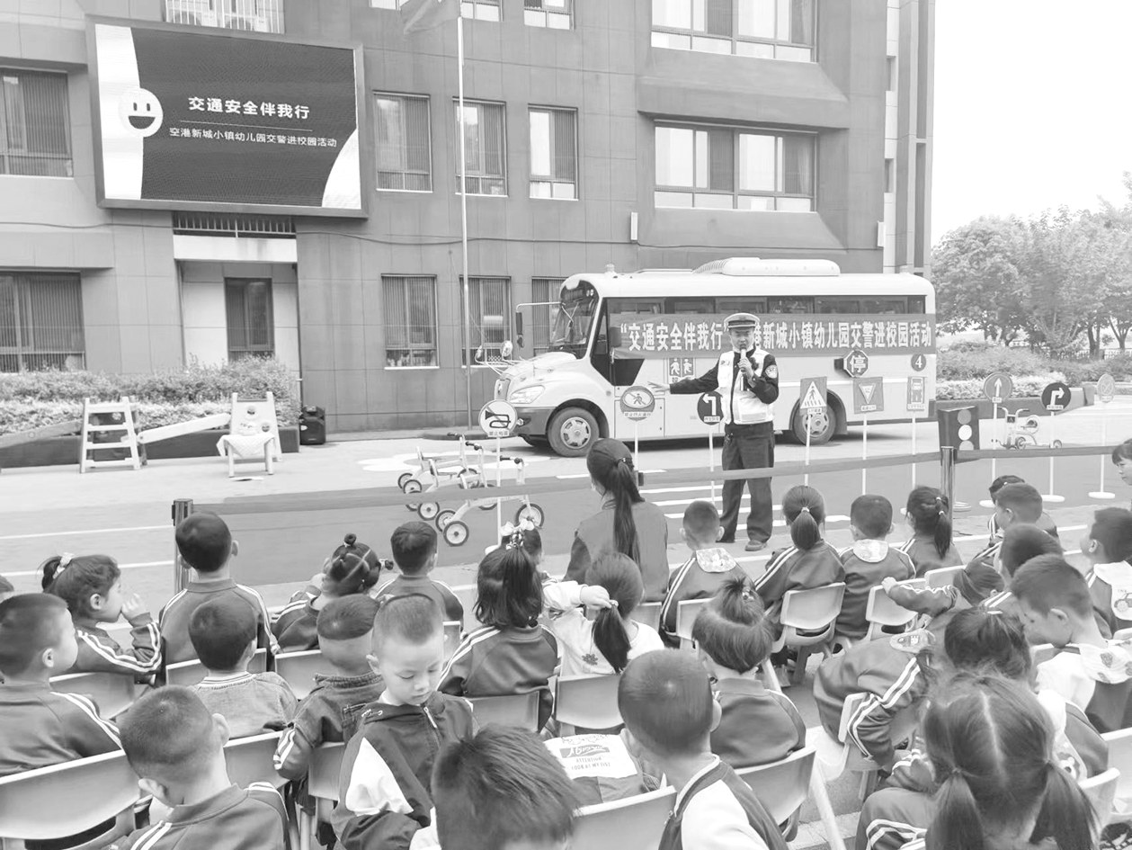 本报讯(记者 孙金龙 通讯员 包勃 张雪媛 文/图)4月23日,西咸新区公安局空港新城分局交巡警大队民警来到辖区空港新城小镇幼儿园,为孩子们带来一堂生动有趣的交通安全教育课。