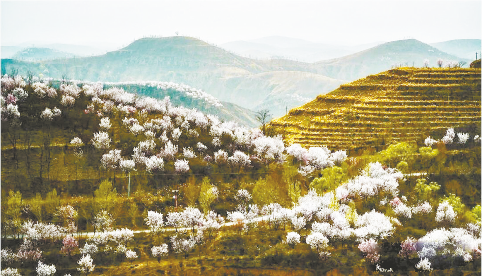这里距离我上初中的学校不远。前年,学校只有六名学生,我为此写了一篇报告文学。这次听说学生都进城上学了,但是学校还保留,县上打算把学校改为青少年教育研学基地。第二天早晨,我们沿着乡间公路,边走边聊。晨光熹微,啁啾的鸟鸣唤醒了山里的黎明。以前,乡间都是土路,现在全是柏油路,路两边长着高大的树木,还种了不少花草。附近村庄的产业都发展起来了,村民养牛、养羊、养鸡、养猪,收入都不错,还有依靠种植葡萄、苹果、甜瓜、西瓜等特色农业致富的。我一位初中同学就住在马家园村,他养了60多头猪,种了200多亩果园。前年,猪肉价格稳定,他养猪收入 20 多万元。他还在村里承包了一个坝,在坝里养鱼钓鱼,发展休闲农业。