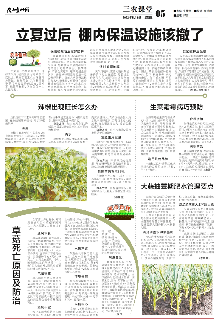 立夏过后 棚内保温设施该撤了