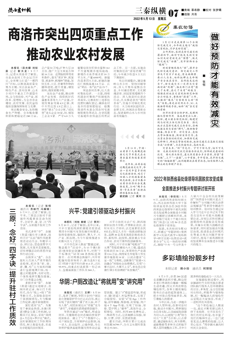 商洛市突出四项重点工作 推动农业农村发展