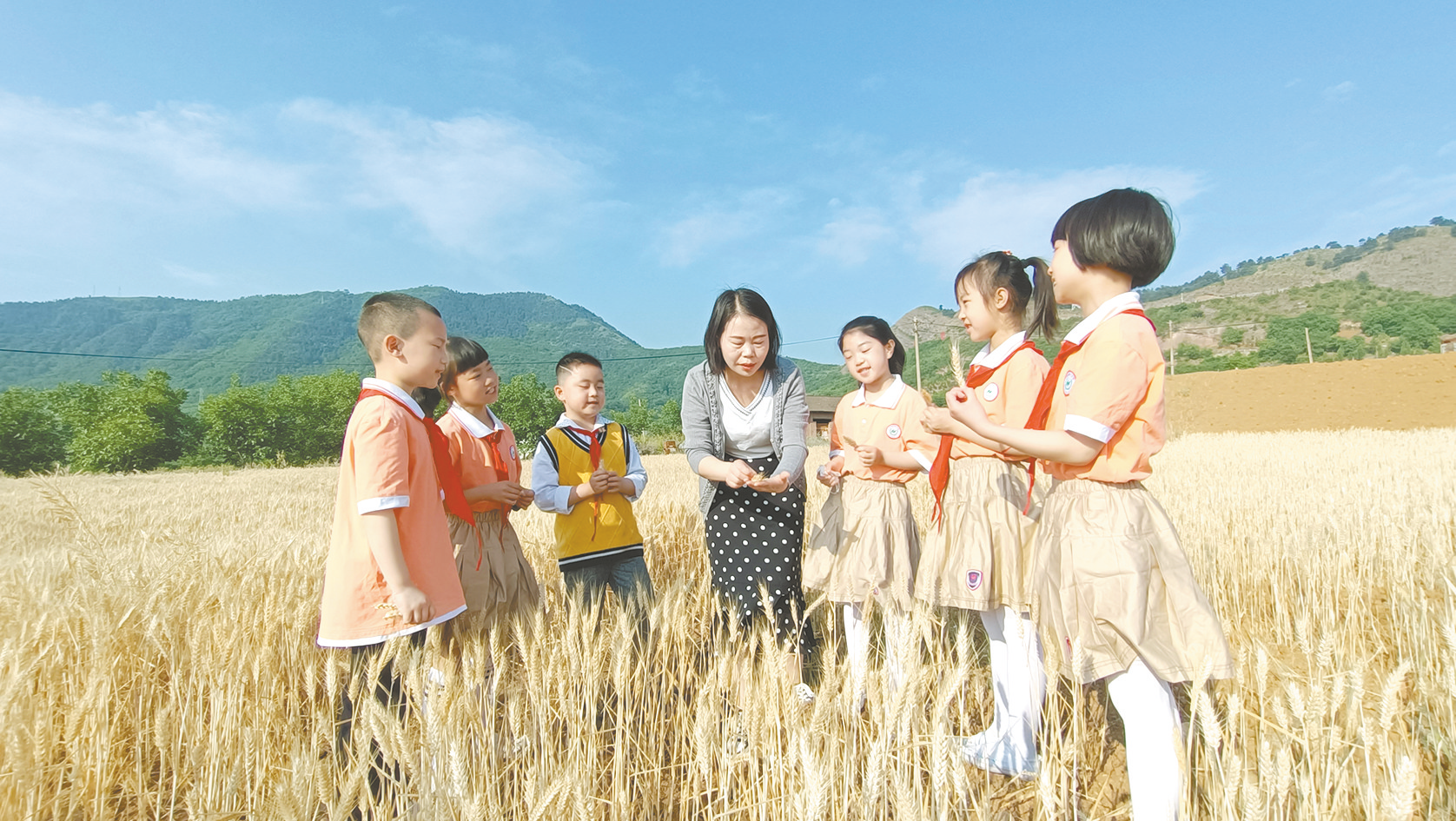 5月24日,丹凤县第一小学教师利用课外时间,组织部分小学生来到麦田了解小麦的播种、成长过程,培养学生们尊重劳动、珍惜粮食的美德,让节约粮食成为孩子们的自觉行为。