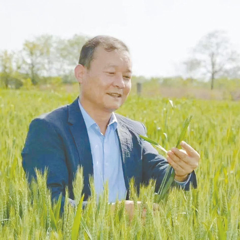 咸阳市农业农村局植物检疫站党支部书记、站长,农业技术推广研究员贾育恒正在查看小麦长势。 本报记者 黄河 文/图