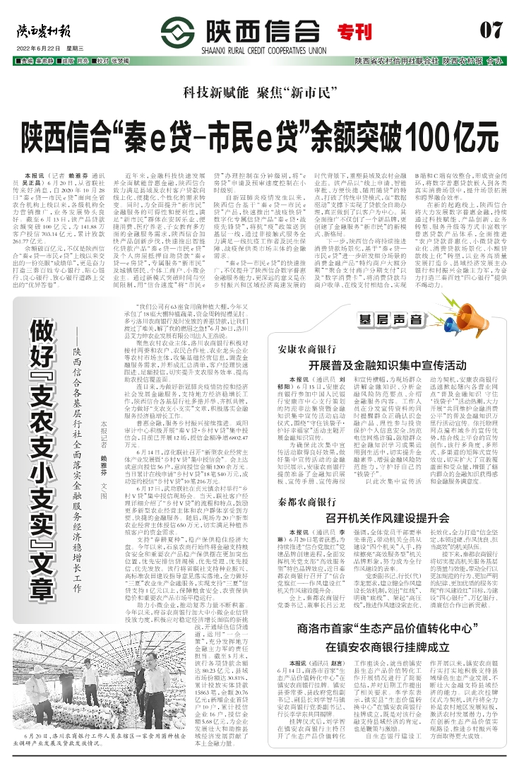 陕西信合“秦e贷-市民e贷”余额突破100亿元