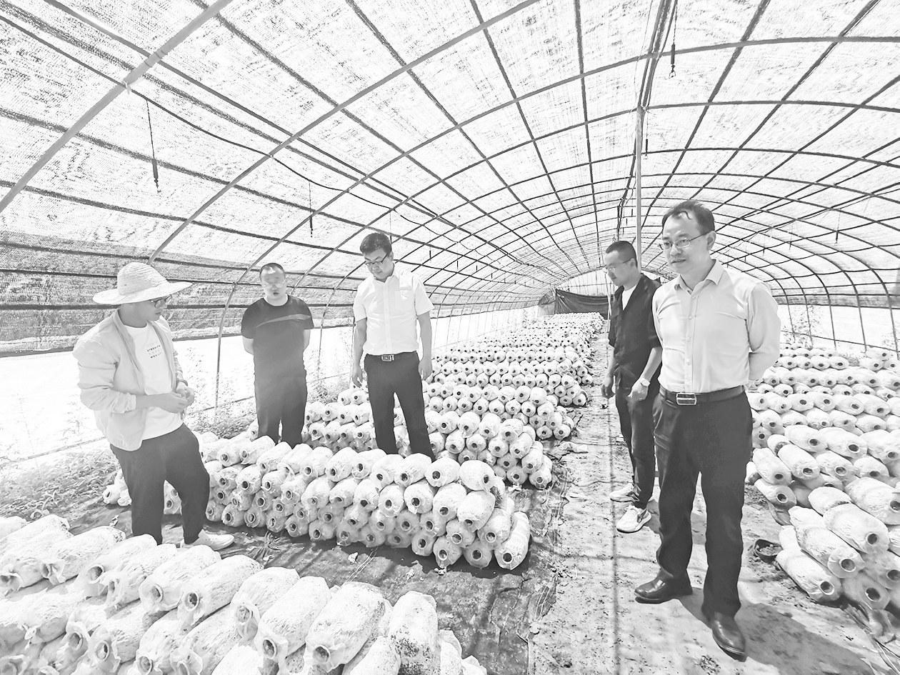 6月20日,洛川农商银行工作人员在辖区一家食用菌种植企业调研产业发展及贷款发放情况。 本报记者 赖雅芬 文/图