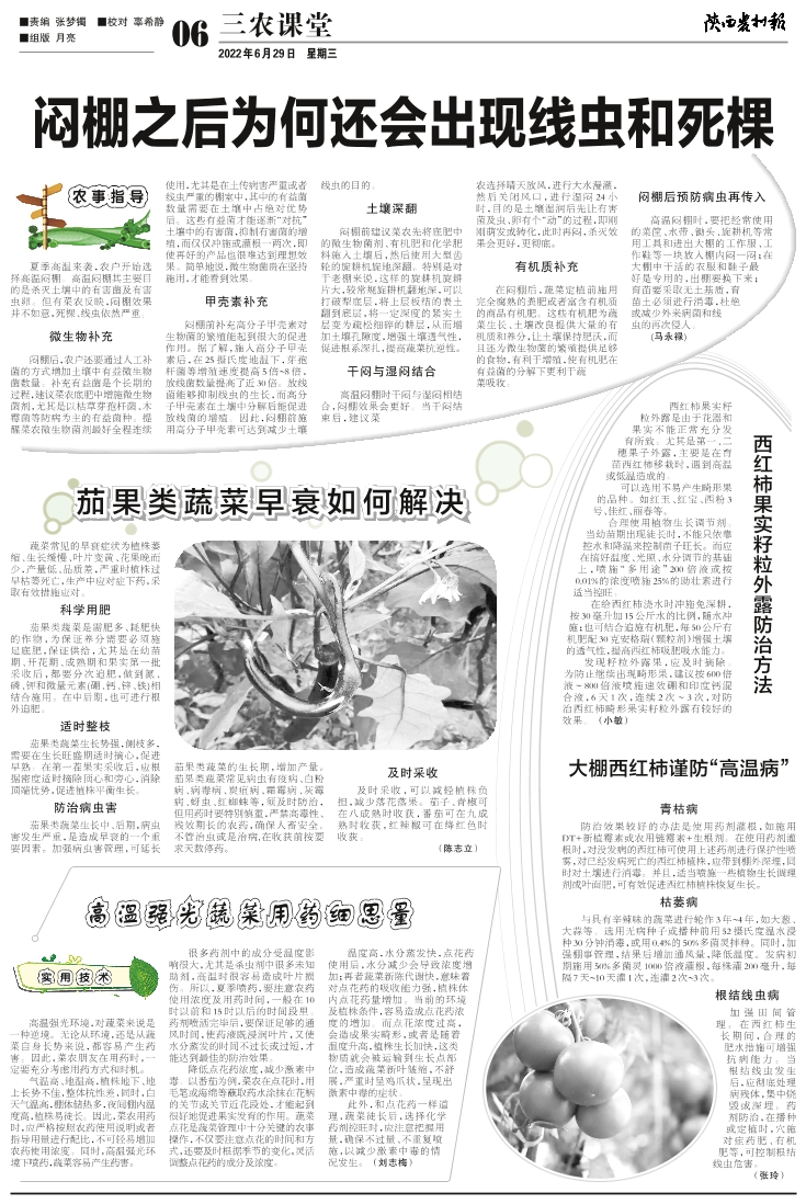 大棚西红柿谨防“高温病”