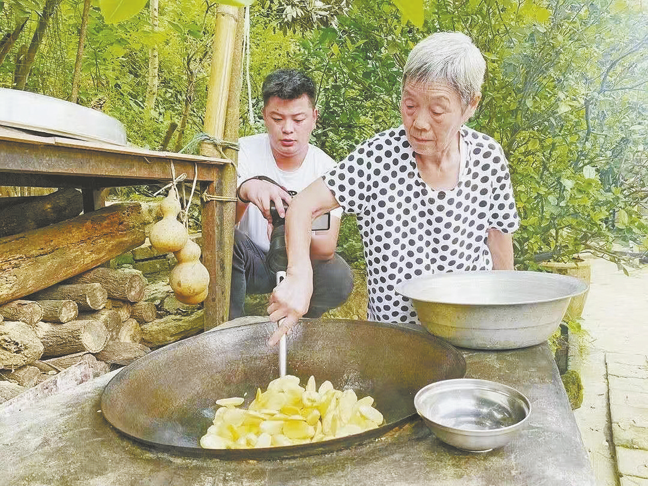 张万露拍摄奶奶做饭日常。 本报记者 方腾 文/图