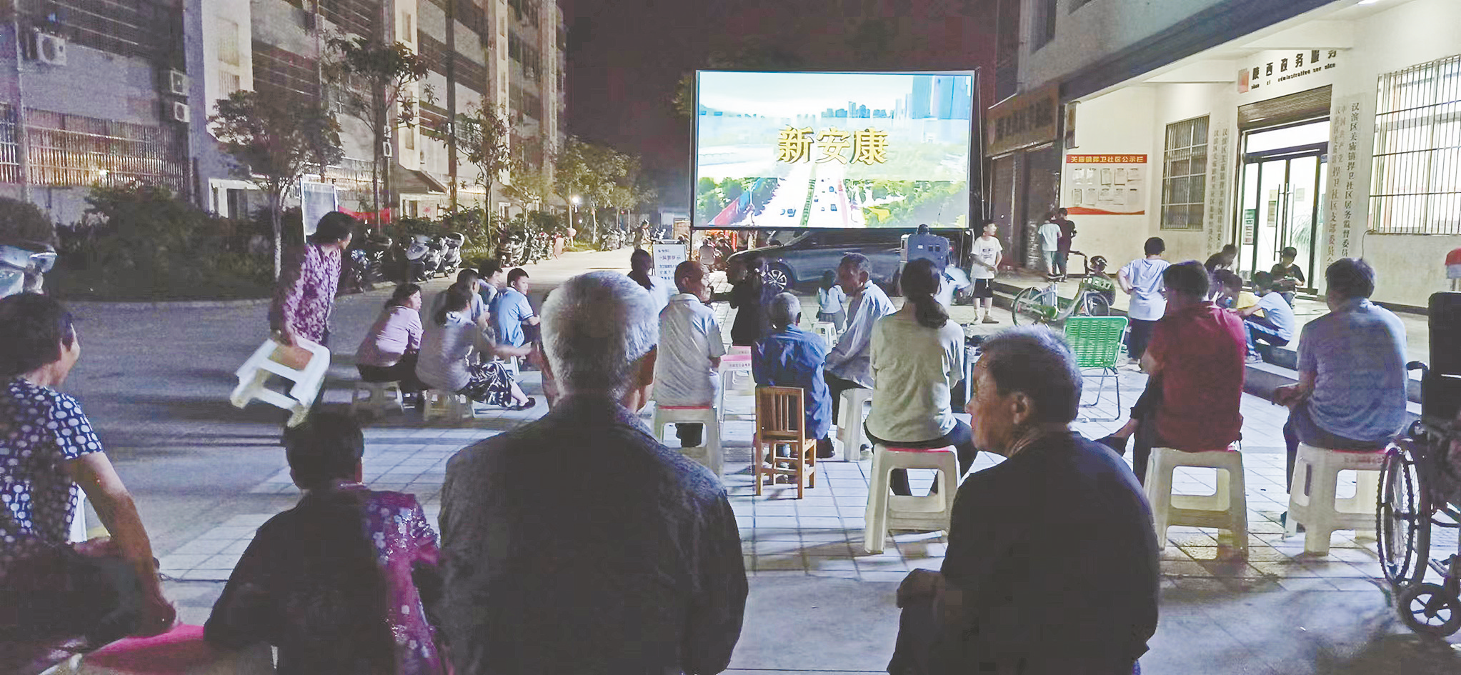 晚上8时,天色渐暗。放映机投出的一束光影点亮了荧幕,也点亮了乡村的夜晚。“在家门口看电影就是图个热闹。左邻右舍一边观影,一边拉家常,感觉生活多了些乐子。”荧幕下,围坐在一起的村民七嘴八舌地聊着。电影开始播放了,马勇贵才得空坐下休息一会儿。看着观影的村民,他脸上洋溢着满足的笑容。
