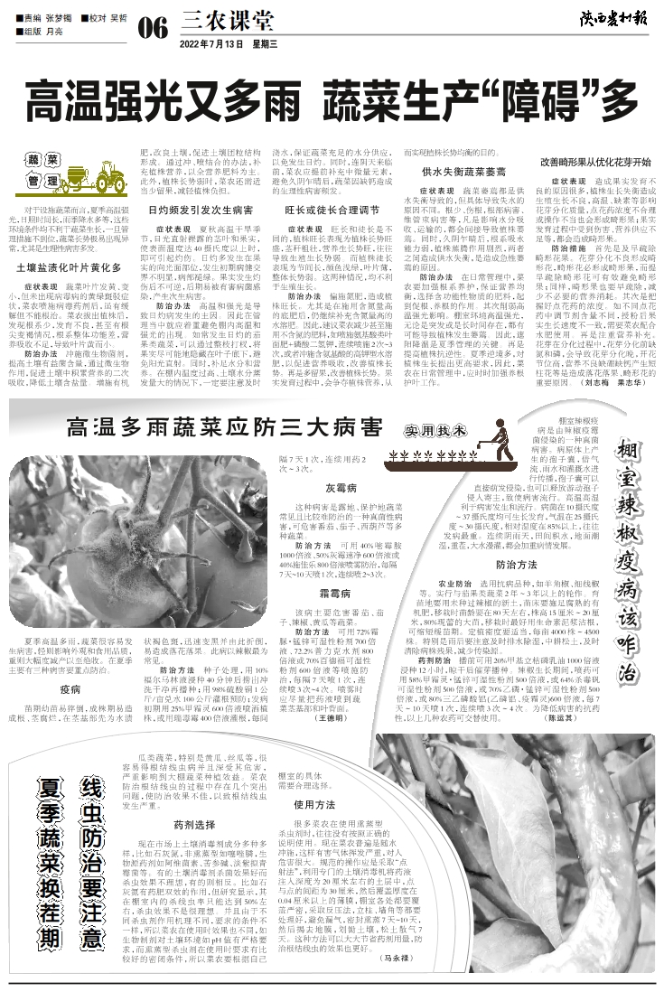 高温多雨蔬菜应防三大病害
