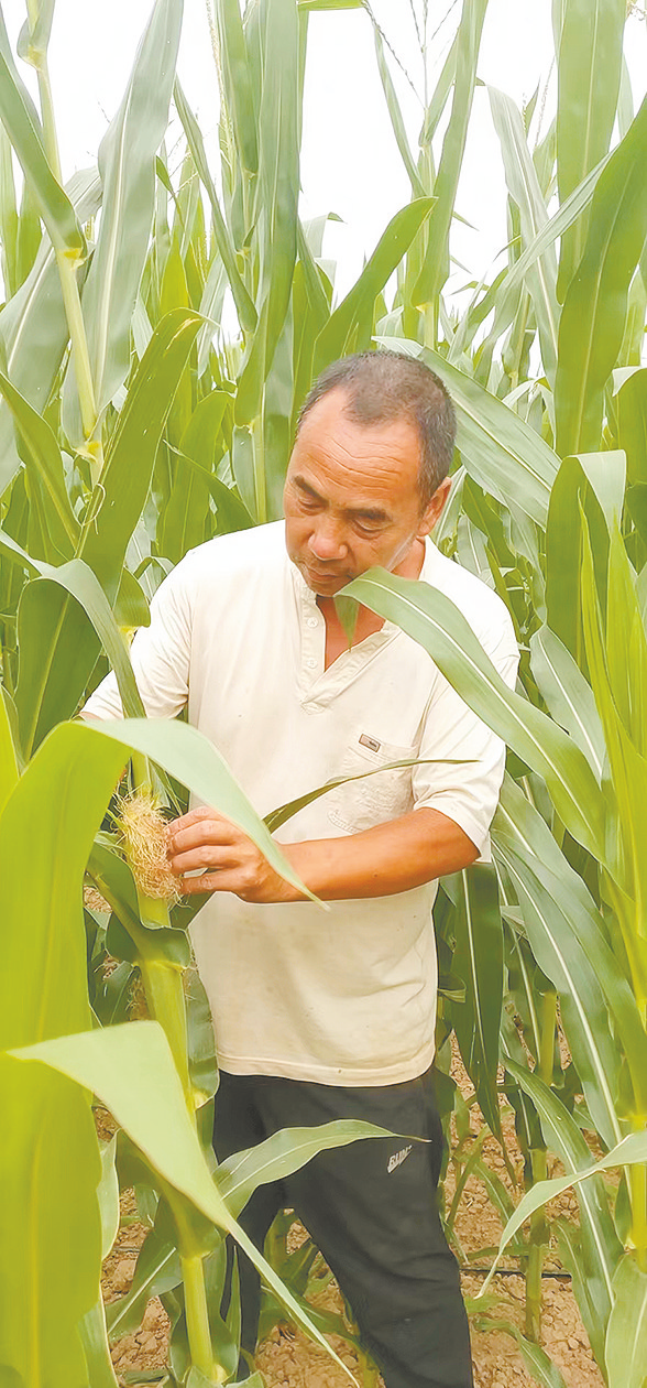 张胜军在查看玉米长势。 本报记者 张恒 文/图