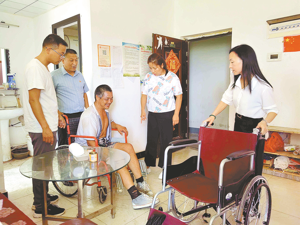7月20日,华阴市岳庙街道华岳社区工作人员和爱心企业为福惠家园残疾群众赠送轮椅。