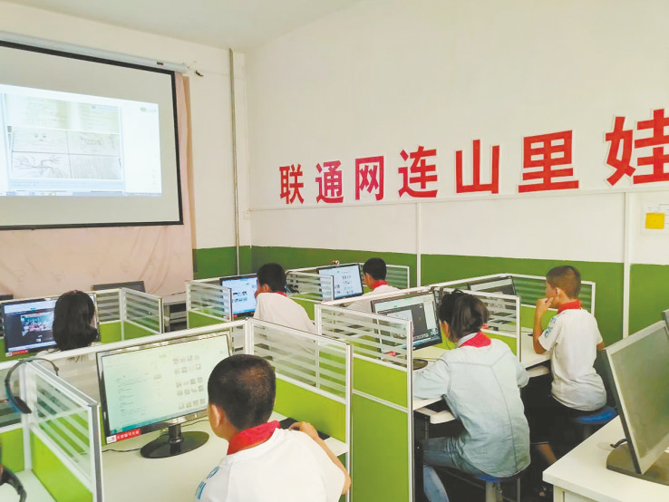 榆林联通为子洲县马蹄沟镇梁家沟小学修建起全镇第一所电教室。