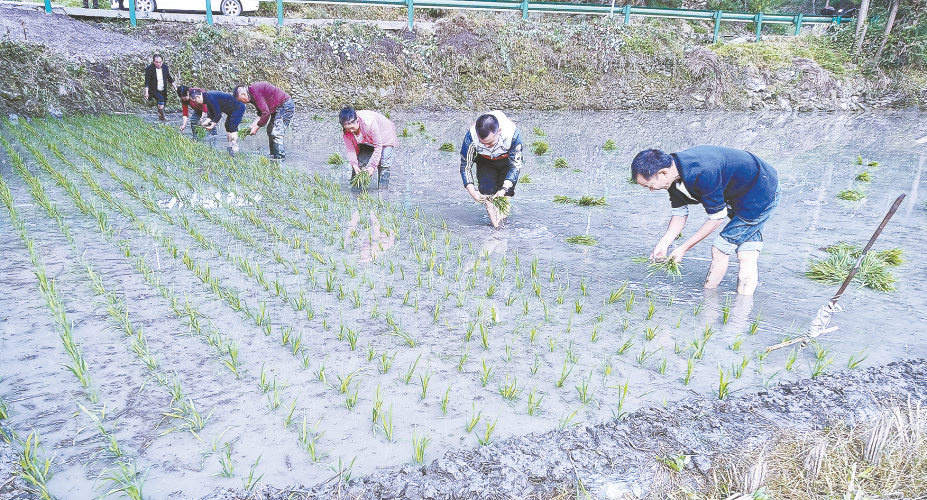 “今年旬阳市在村里建成300亩富硒水稻种植基地,由副市长亲自包抓。我们这块地为撂荒地,流转过来种植水稻,带头进行粮食种植。这也是对工作队员‘三农’工作的一个体验。”张世安说。
