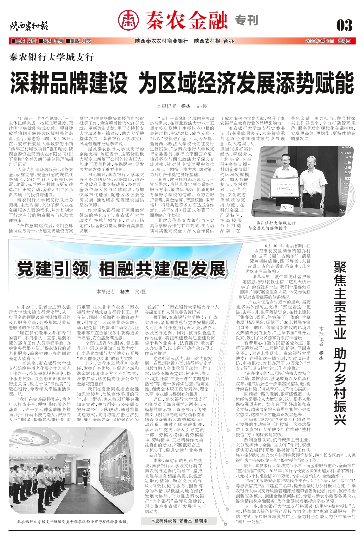 秦农银行大学城支行 深耕品牌建设 为区域经济发展添势赋能