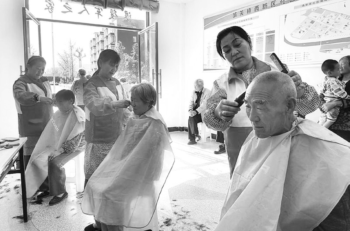 9月1日,千阳县城关镇西新区社区开展义务理发活动,4名志愿者为居民理发,受到大家一致称赞。