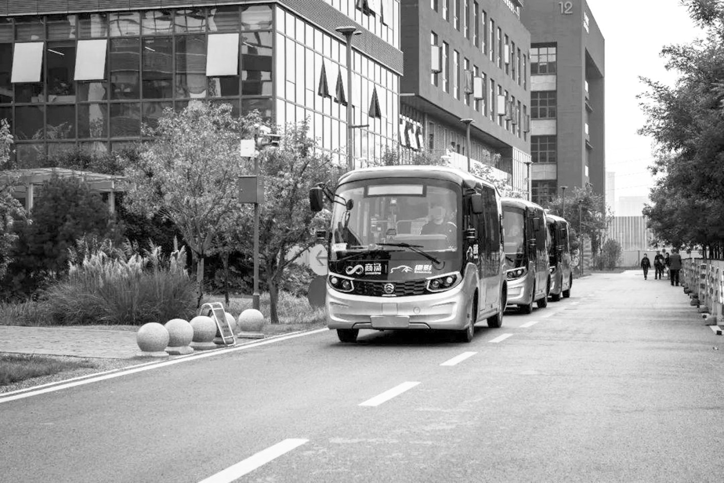 本报讯(记者 孙金龙 通讯员 牛雪影 文/图)9月21日上午,三辆自动驾驶的小巴车行驶在西咸新区沣西新城自动驾驶测试路段,为体验者带来充满科技感和未来感的乘车感受。