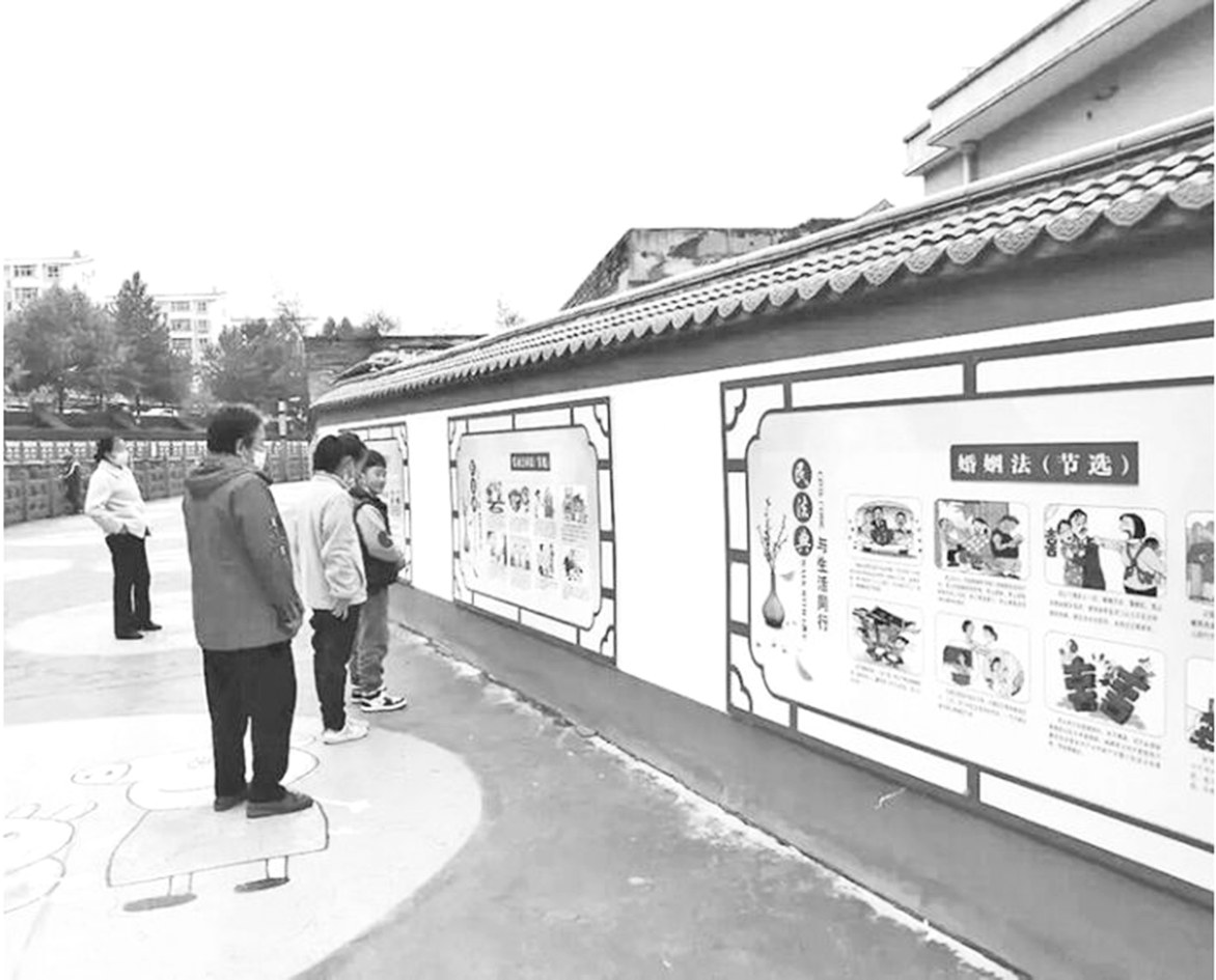 本报讯 (杨青 文/图)“2022年最新法律法规有哪些?”“朋友圈广为流传的小知识哪些是谣言?”“如何预防电信诈骗?”……近日,路过麟游县西街小学的群众发现,附近的人行道上多了一条法治文化长廊,丰富的法律知识吸引了不少群众驻足浏览。