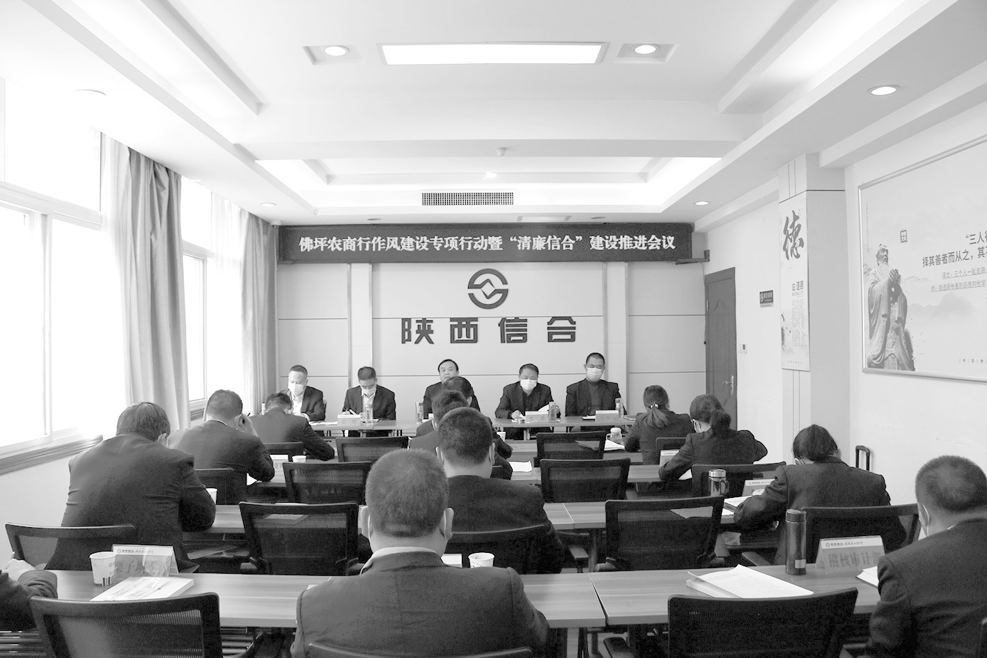 佛坪农商银行作风建设专项行动暨“清廉信合”建设推进会现场。 本报讯(通讯员 鲁玉潇)10月24日笔者了解到,近日佛坪农商银行组织召开了作风建设专项行动暨“清廉信合”建设推进会。