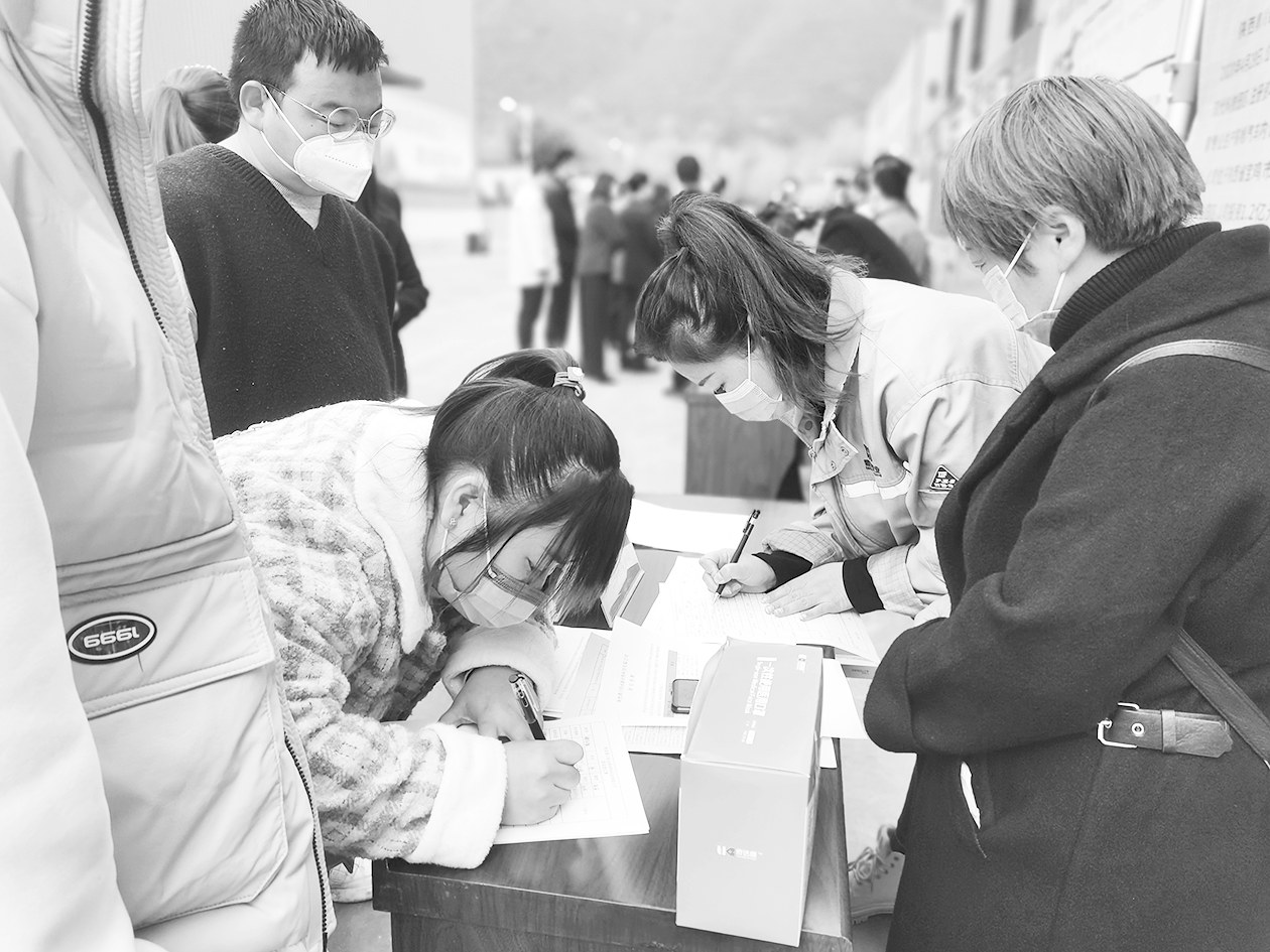 针对新冠肺炎疫情对当地企业及群众就业的冲击和影响,凤县积极出台各项措施,确保疫情防控稳定就业两不误。今年以来,该县举办一系列线上线下招聘活动,帮助重点项目、重点企业招贤纳才,促进农村劳动力就近就地就业。图为求职人员与企业工作人员签订就业合同。