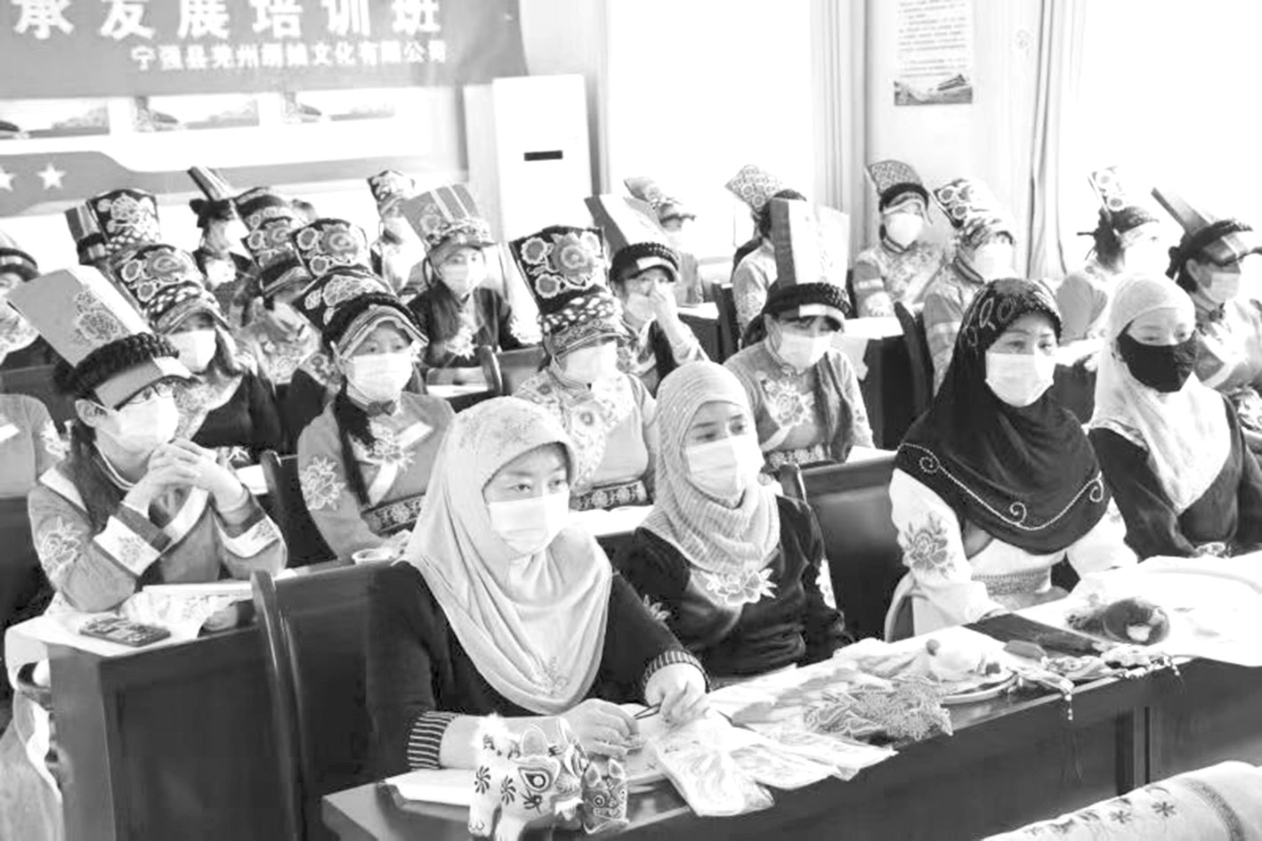连日来,宁强县阳平关镇邀请专家通过进村组、进社区现场教学,为农民工进行羌绣培训、劳动力技能培训等。截至目前,该镇开展劳动技能培训7期200余人,羌绣培训2期103人。图为11月15日,学员正在培训班上课。通讯员 边清学 摄