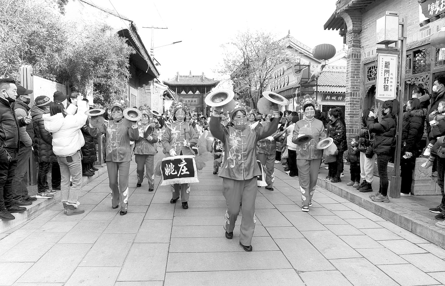 正值兔年新春佳节,专列游客在韩城将享受到贴心的旅游服务——专职导游全程免费讲解,古城三庙景区免门票参观、观看非遗节目表演等。游客走在古城,社火、秧歌、踩高跷……喜庆的韩城阵鼓传遍大街小巷,让他们目不暇接,纷纷拿出手机留下精彩的瞬间。