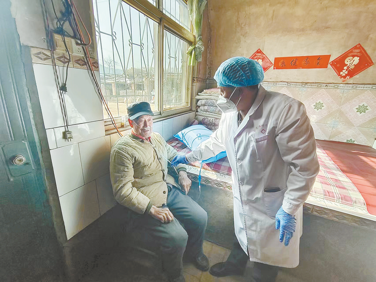 来到杨中保家中,田满仓麻利地为老人测了血压,同时询问老人此时的身体情况。一番检查后,田满仓拿出氧气袋让杨中保吸氧。看着老人脸色逐渐好转,田满仓终于松了口气。