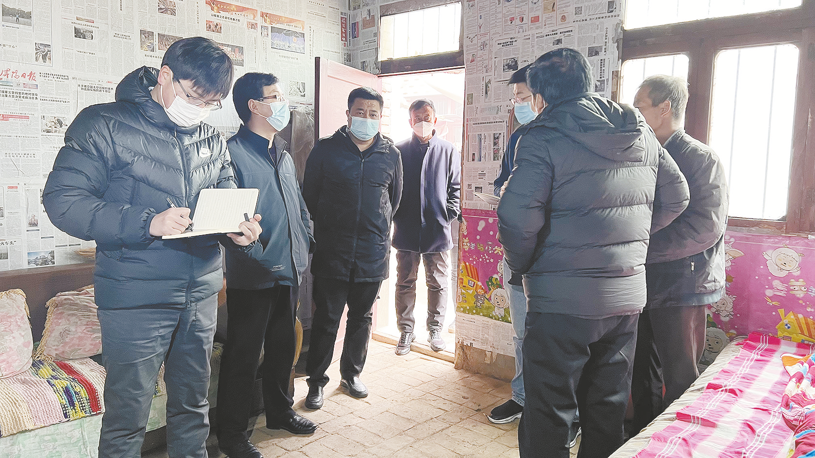 本报记者王东宇(左一)在永寿县渠子镇咀头村走访脱贫群众。