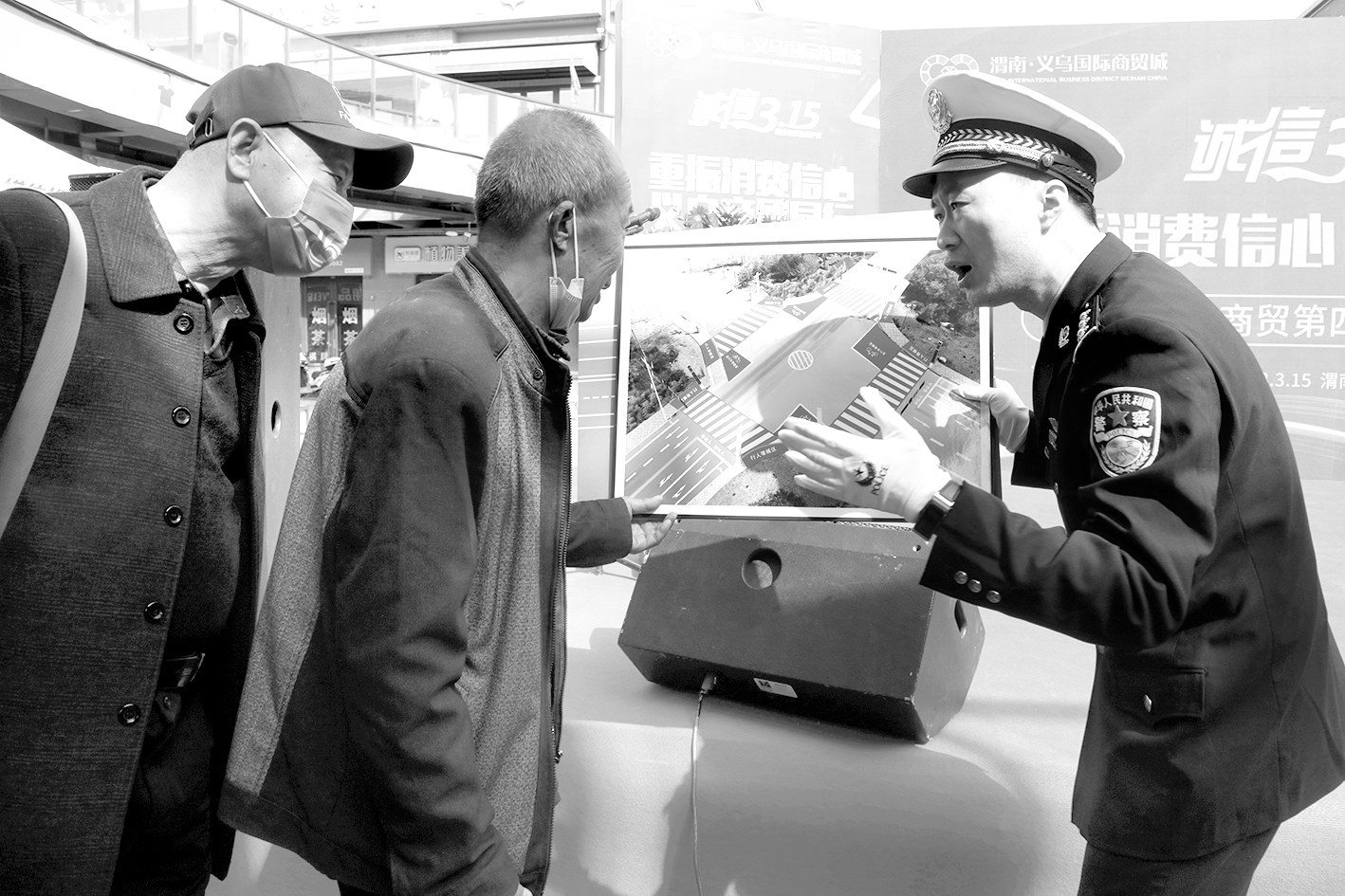 当天,民警走进正在举行的渭南义乌商城电动车惠民购车会,现场为群众提供电动车挂牌预约和咨询服务,并针对电动车如何规范行驶、安全通过十字路口进行图示讲解。