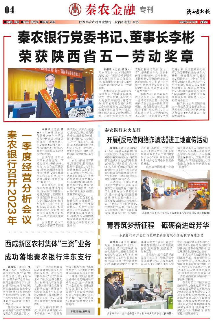秦农银行党委书记、董事长李彬荣获陕西省五一劳动奖章