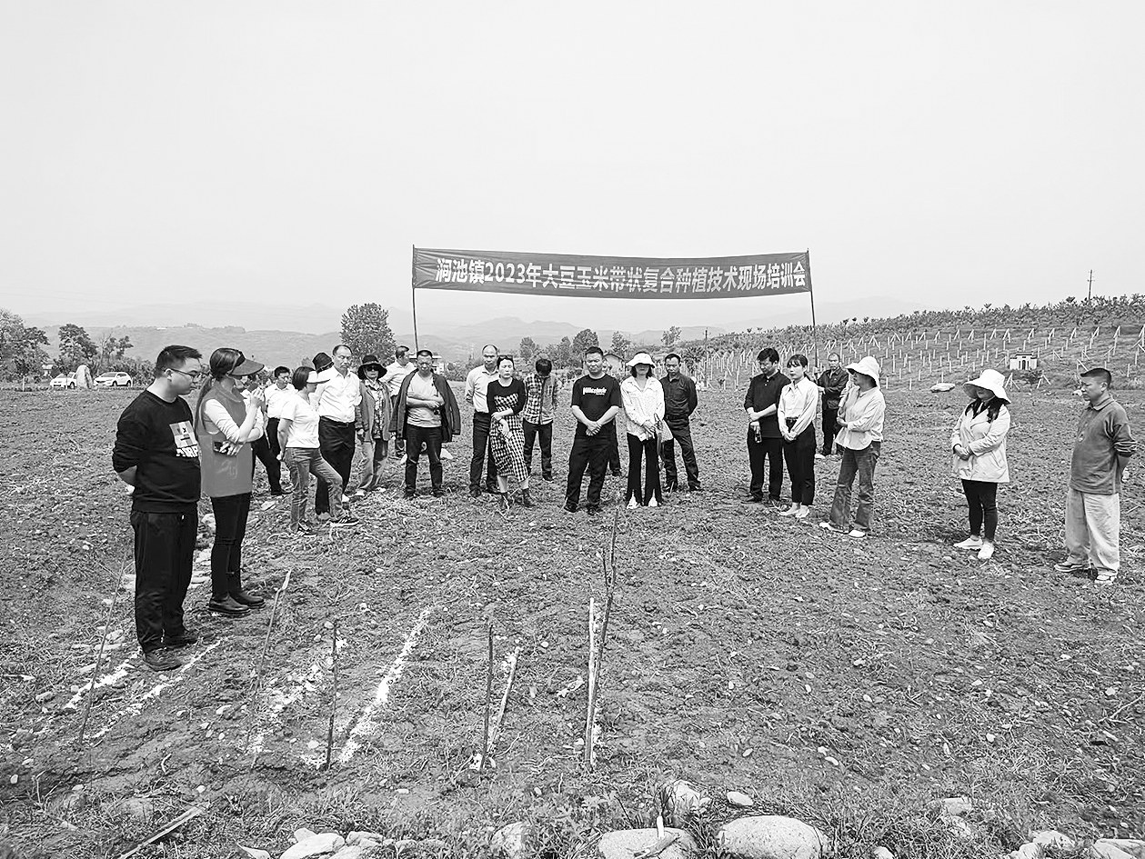 4月18日,汉阴县涧池镇2023年玉米大豆带状复合种植技术现场培训会在仁河村举办。