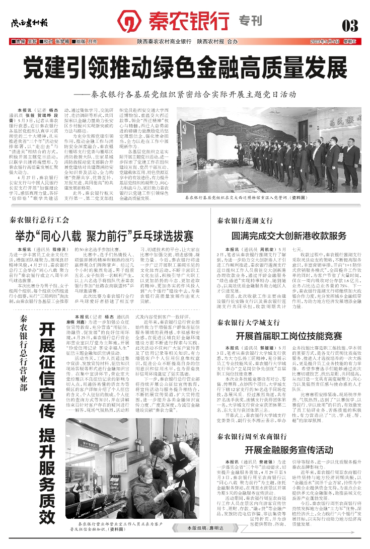 秦农银行总行营业部 开展征信宣传 提升服务质效