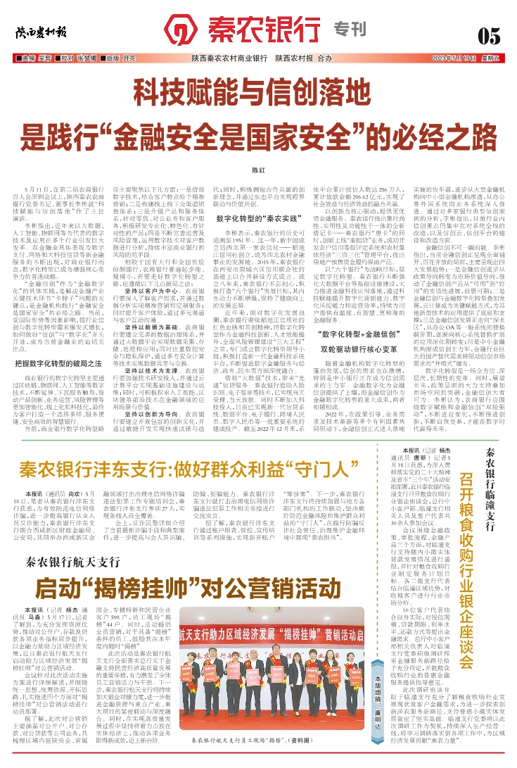 秦农银行航天支行启动“揭榜挂帅”对公营销活动